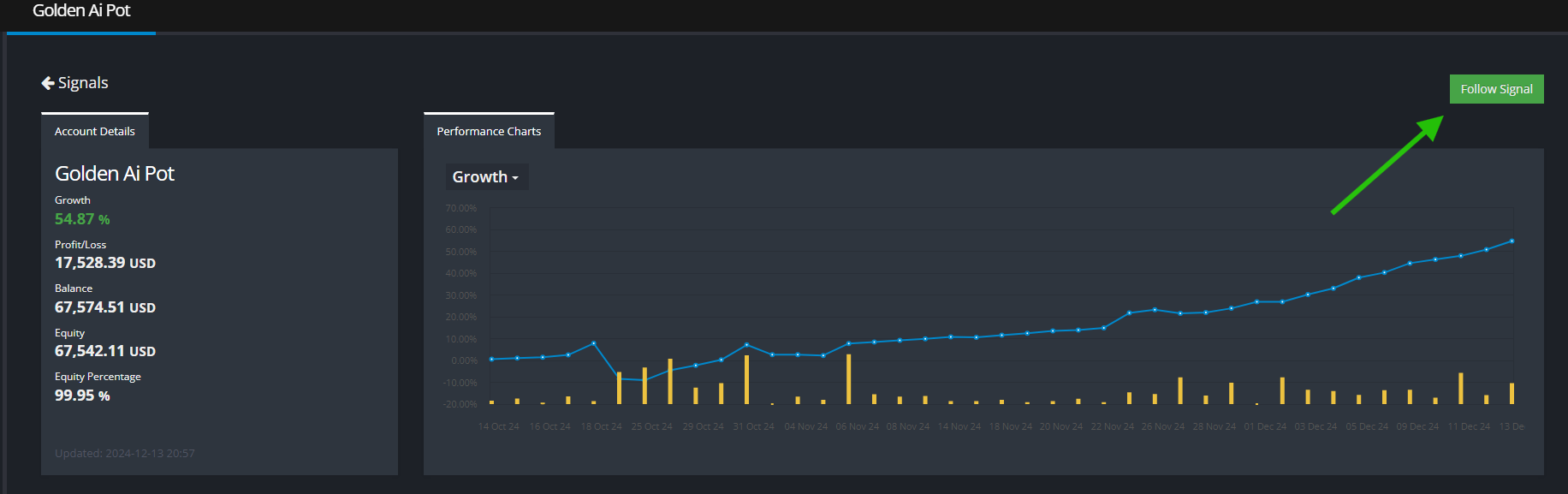 With copy ai trading tools you can offer your own trading account out to other users as a signal via a signal page. Signal pages are publicly viewable urls with a long random code, so it can not be guessed, so you are never competing with other signals on the platform.